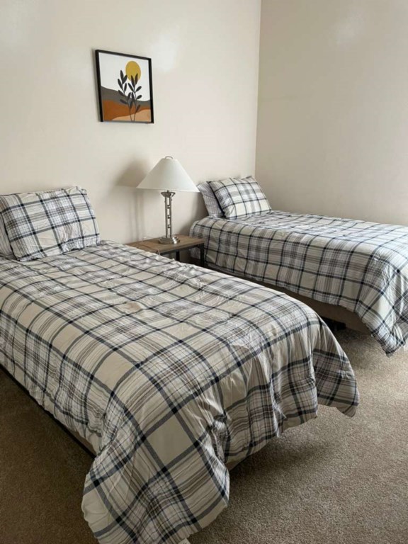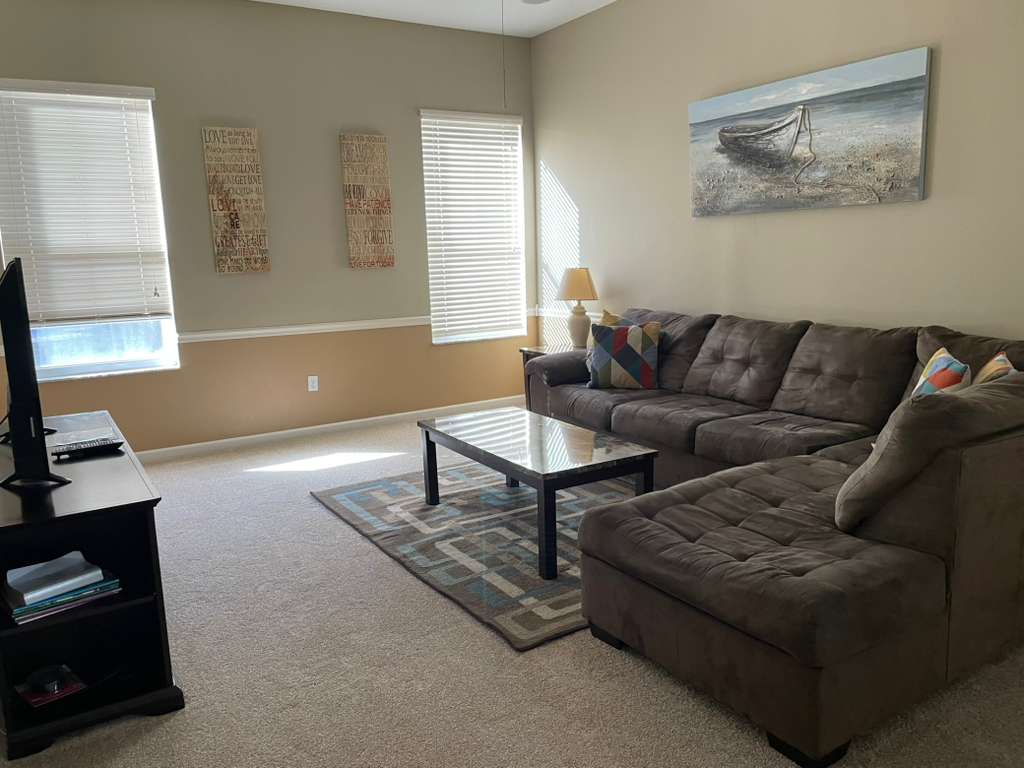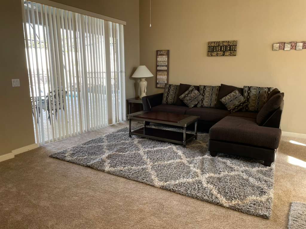 The second living space/family area has another large sectional with Smart TV for everyone to sit and watch a movie on their downtime. To the left of this area, there is the Queen bedroom which shares the Hallway bathroom with shower/tub combo. Access to the pool area via a separate door can also be found along this corridor.