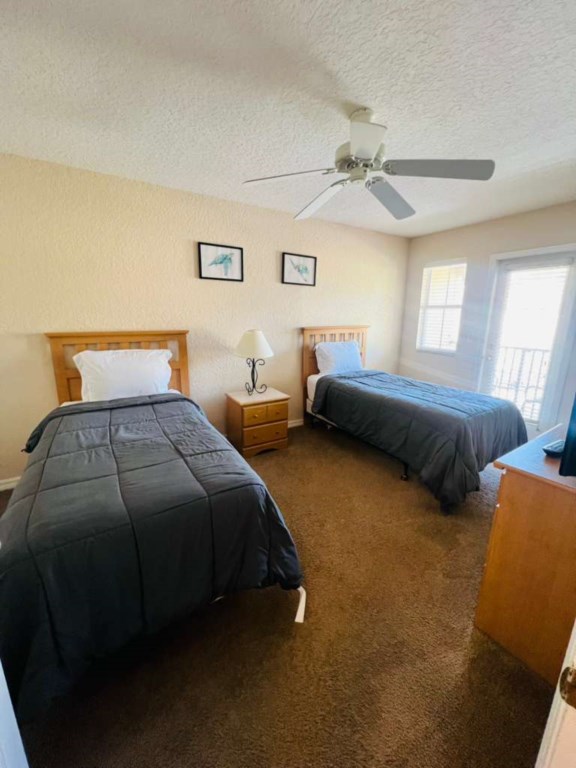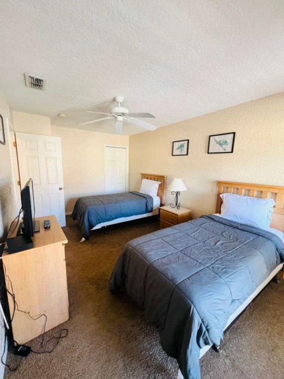 The second bedroom is a Twin Room with 2 single beds with its own Ensuite Bathroom (tub/shower combo). This bedroom is bright and airy and has a closet and its own TV.