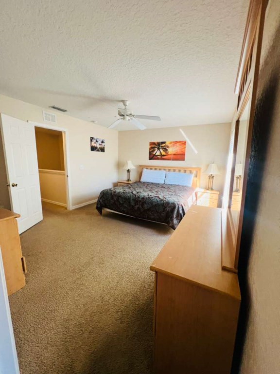 UPSTAIRS The Master King Bedroom has its own ensuite full size bathroom with tub/shower combo. This spacious bedroom has a door leading to a small balcony which overlooks a lake. Imagine sitting here with your coffee each morning before you set of for an exciting day in and around Orlando.